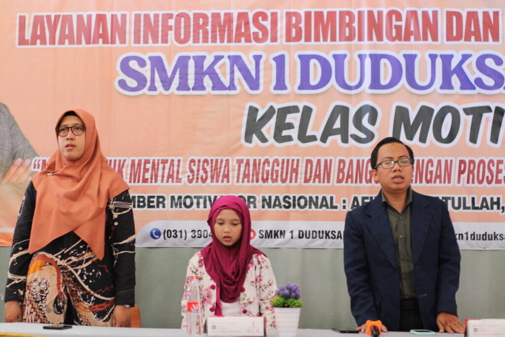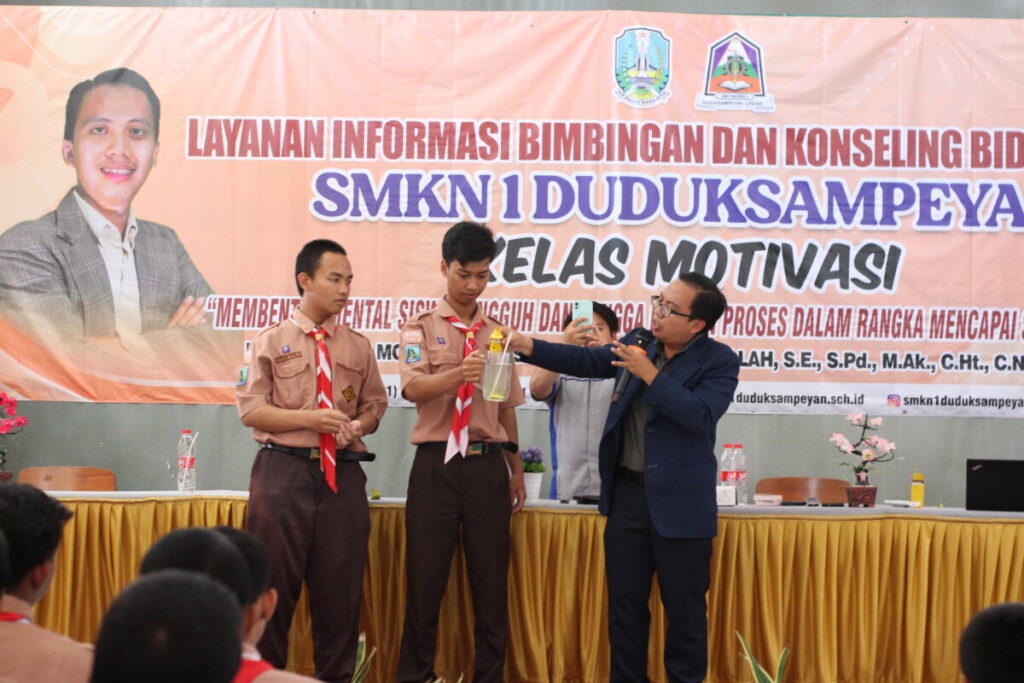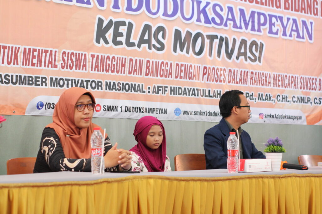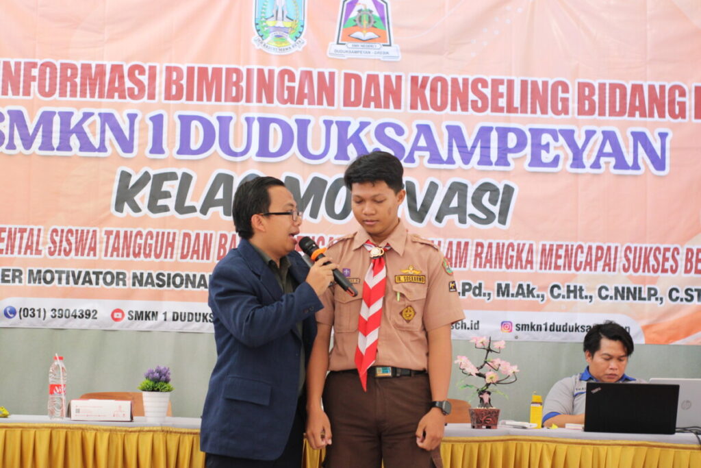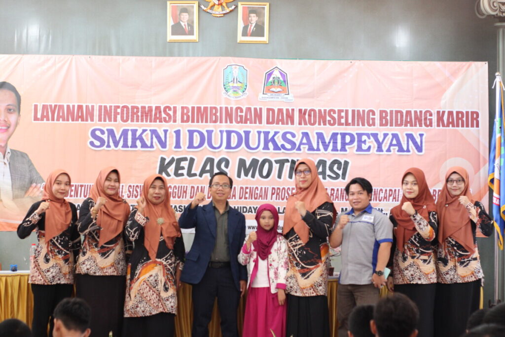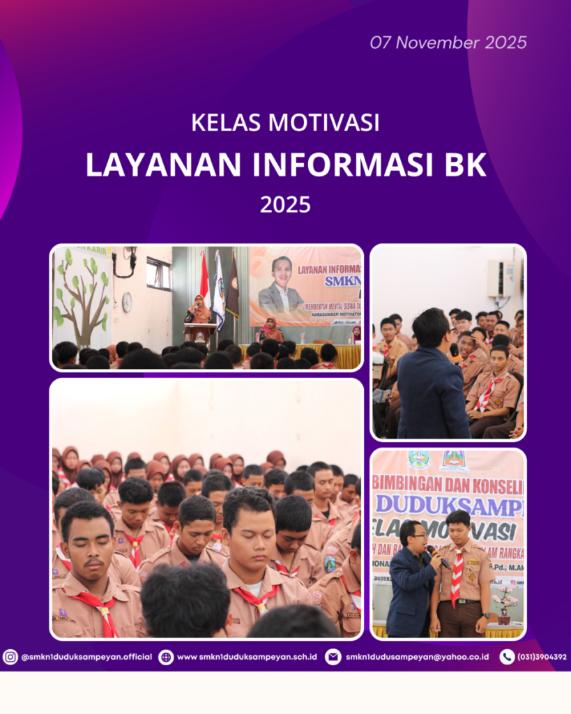 Pada hari Jum’at, 07 November 2025, SMKN 1 Duduksampeyan melaksanakan kegiatan Layanan Informasi Bimbingan dan Konseling Bidang Karir “Kelas Motivasi” yang bertempat di Aula SMKN 1 Duduksampeyan. Kegiatan ini diikuti oleh seluruh siswa kelas XII dan menghadirkan narasumber Motivator Nasional, Bapak Afif Hidayatullah, S.E., S.Pd., M.Ak., C.Ht., C.NNLP., C.STMI.
