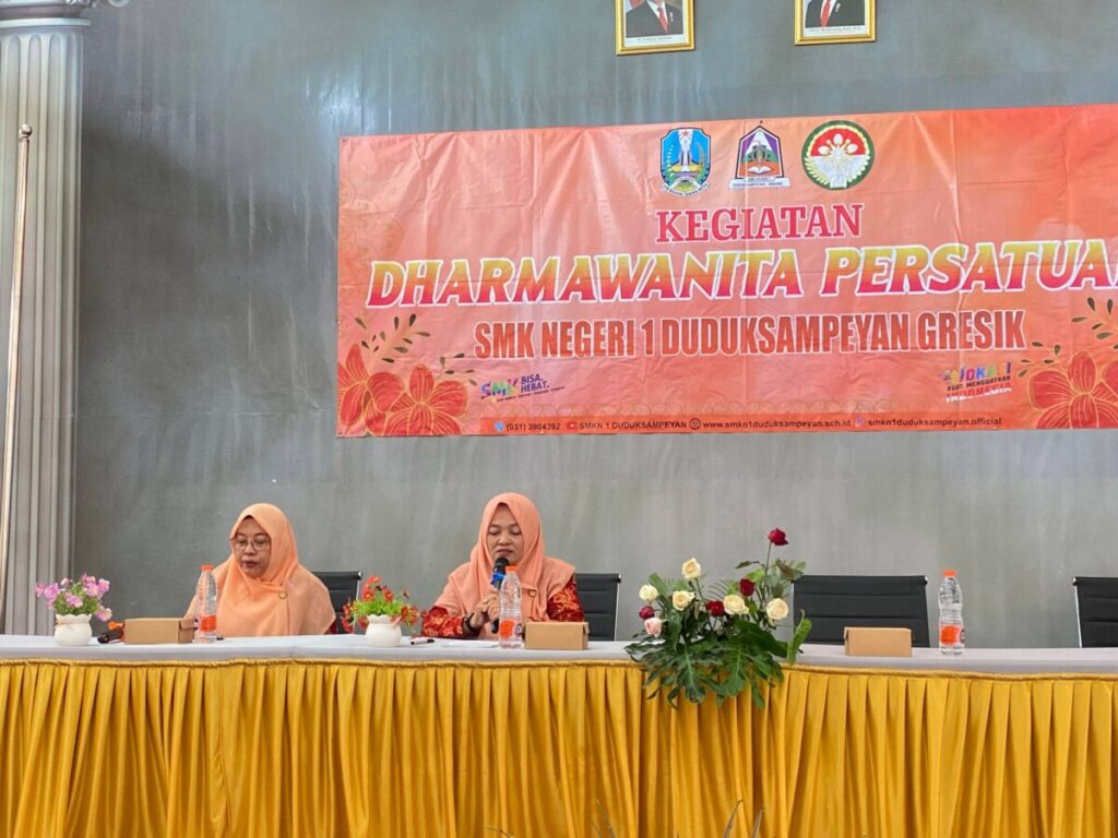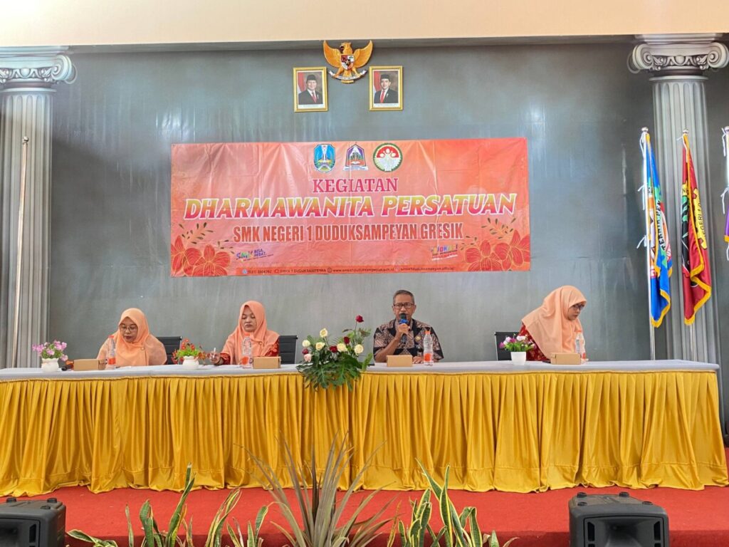 Setelah senam, acara dilanjutkan di Aula sekolah. Pertemuan resmi dibuka dengan sambutan dari Pembina Dharma Wanita Persatuan SMKN 1 Duduksampeyan, Bapak Drs. Samsul Anang, M.M., yang menyampaikan apresiasi atas kekompakan anggota serta pentingnya peran Dharma Wanita dalam mendukung kemajuan sekolah. Kemudian dilanjutkan sambutan dari Ketua Dharma Wanita Persatuan, Ibu Mudawammah, S.S., yang menekankan pentingnya kebersamaan dan peningkatan kapasitas diri bagi setiap anggota.