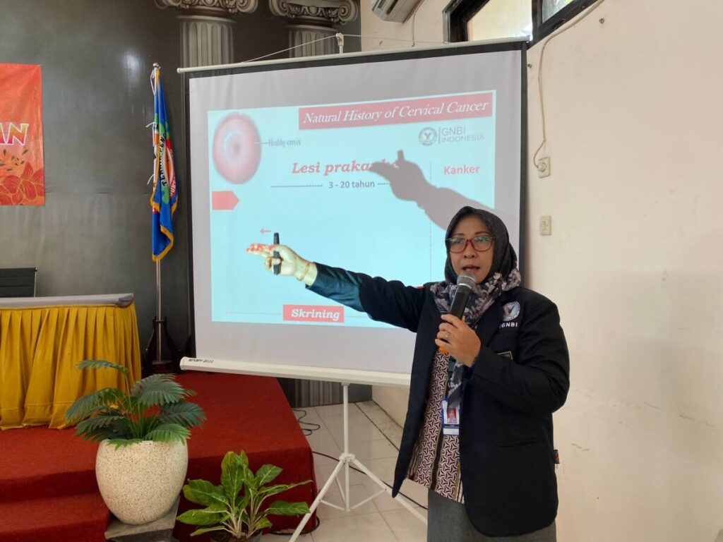 Memasuki acara inti, para peserta mendapatkan penyuluhan kesehatan tentang reproduksi wanita yang disampaikan oleh GNBI Indonesia. Materi ini memberikan wawasan penting bagi perempuan untuk menjaga kesehatan diri secara tepat dan berkelanjutan.