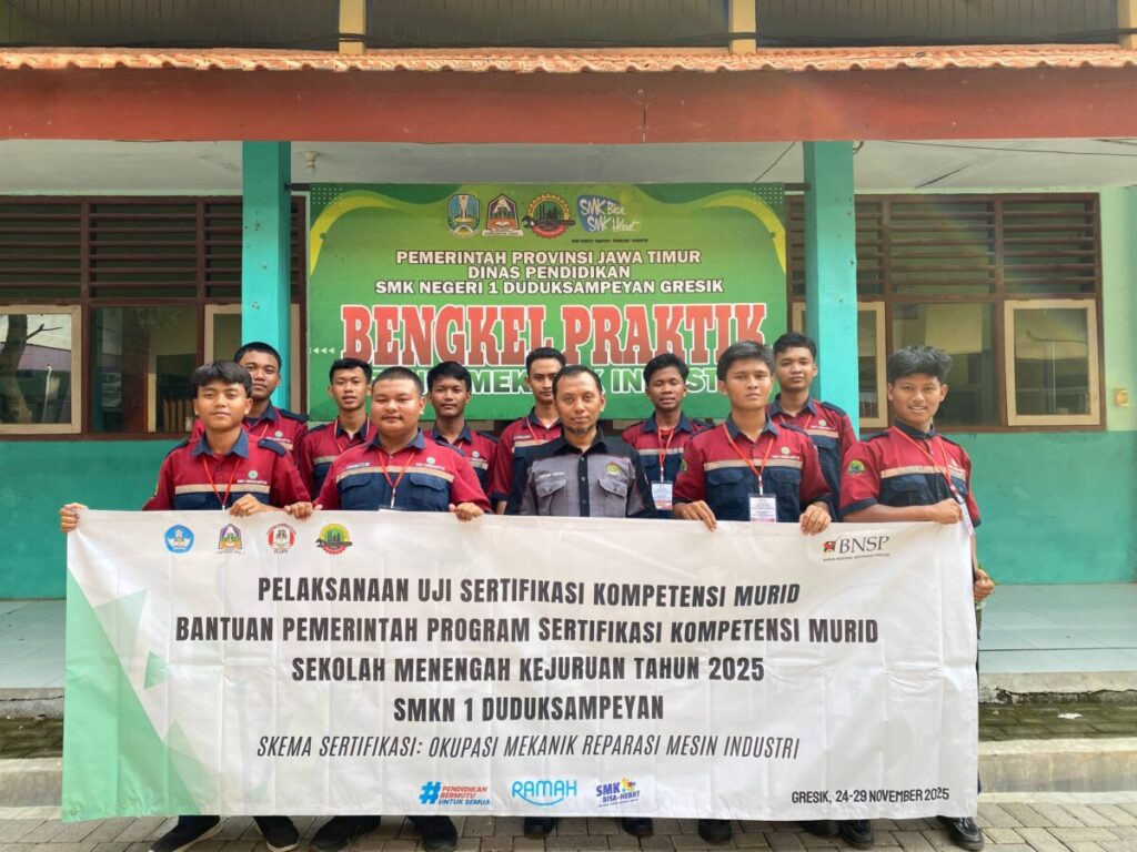 SMKN 1 Duduksampeyan melaksanakan Uji Sertifikasi Kompetensi Murid melalui Program Bantuan Pemerintah Sertifikasi Kompetensi SMK Tahun 2025 sebagai bentuk komitmen dalam meningkatkan kualitas dan daya saing lulusan agar selaras dengan kebutuhan dunia industri.
