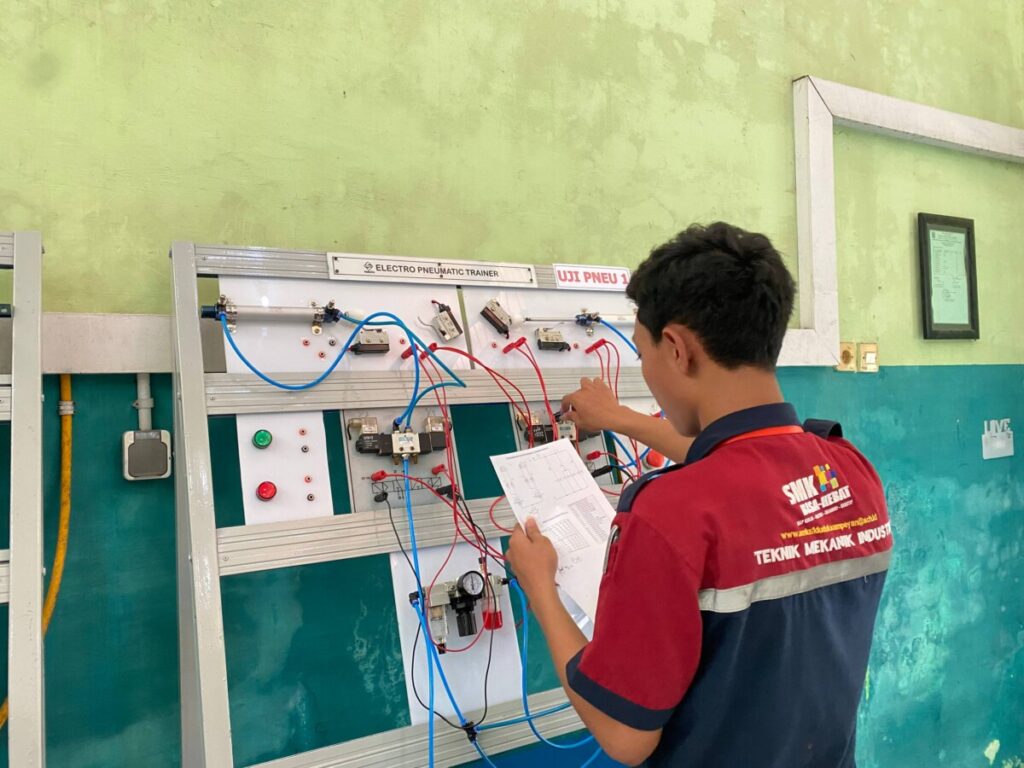 Selanjutnya, pada 24–29 November 2025, siswa Teknik Mekanik Industri mengikuti sertifikasi dengan skema Okupasi Mekanik Reparasi Mesin Industri yang menguji kemampuan perawatan, perbaikan, dan pemecahan masalah mesin industri.