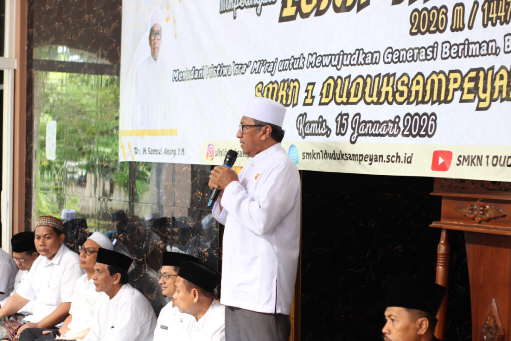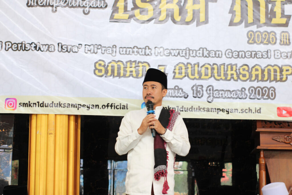 Dalam rangka memperingati peristiwa agung Isra Mi’raj Nabi Muhammad SAW 1447 H. Kamis, 15 Januari 2025, keluarga besar SMKN 1 Duduksampeyan menyelenggarakan kegiatan keagamaan dengan tema : “Meneladani Peristiwa Isra Mi’raj untuk Mewujudkan Generasi Beriman, Berilmu, dan Berakhlak Mulia.”