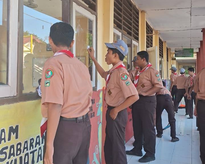 Setelah kegiatan senam, acara dilanjutkan dengan kerja bakti membersihkan area lingkungan sekolah. Peserta didik bersama guru membersihkan lapangan, taman, serta area kelas sebagai bentuk kepedulian terhadap kebersihan dan kenyamanan lingkungan belajar.