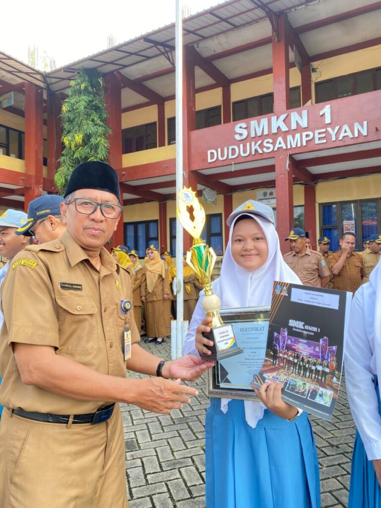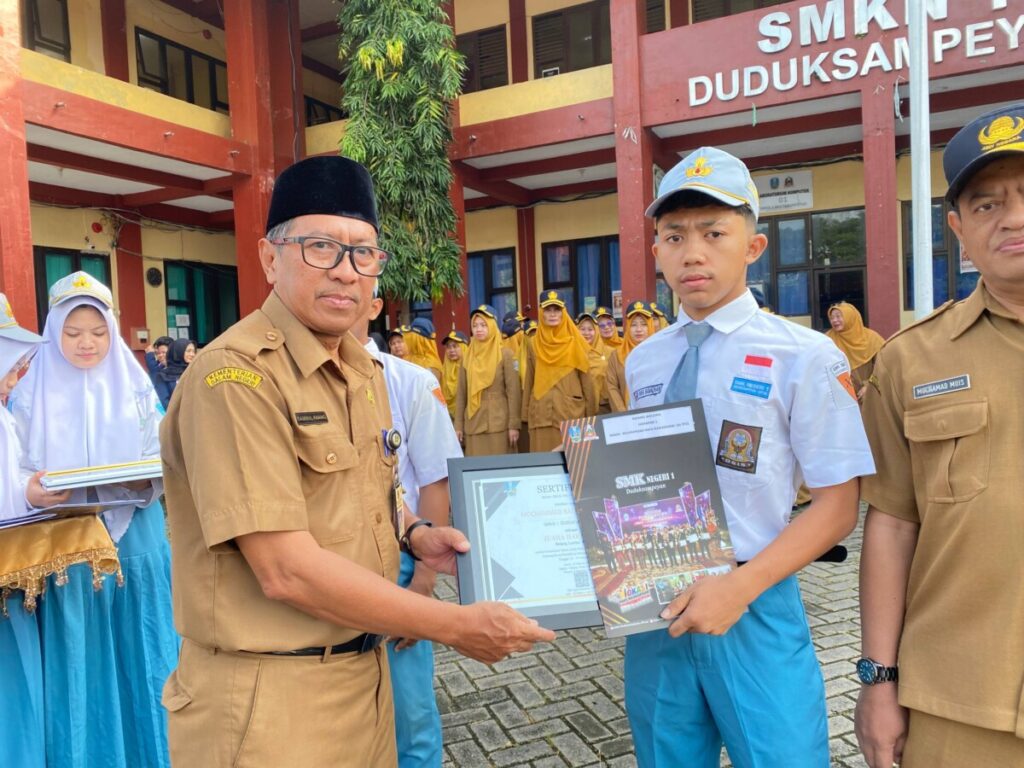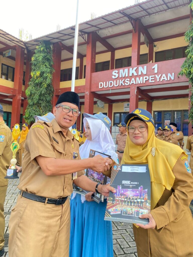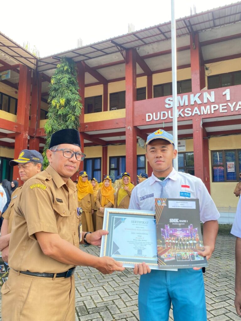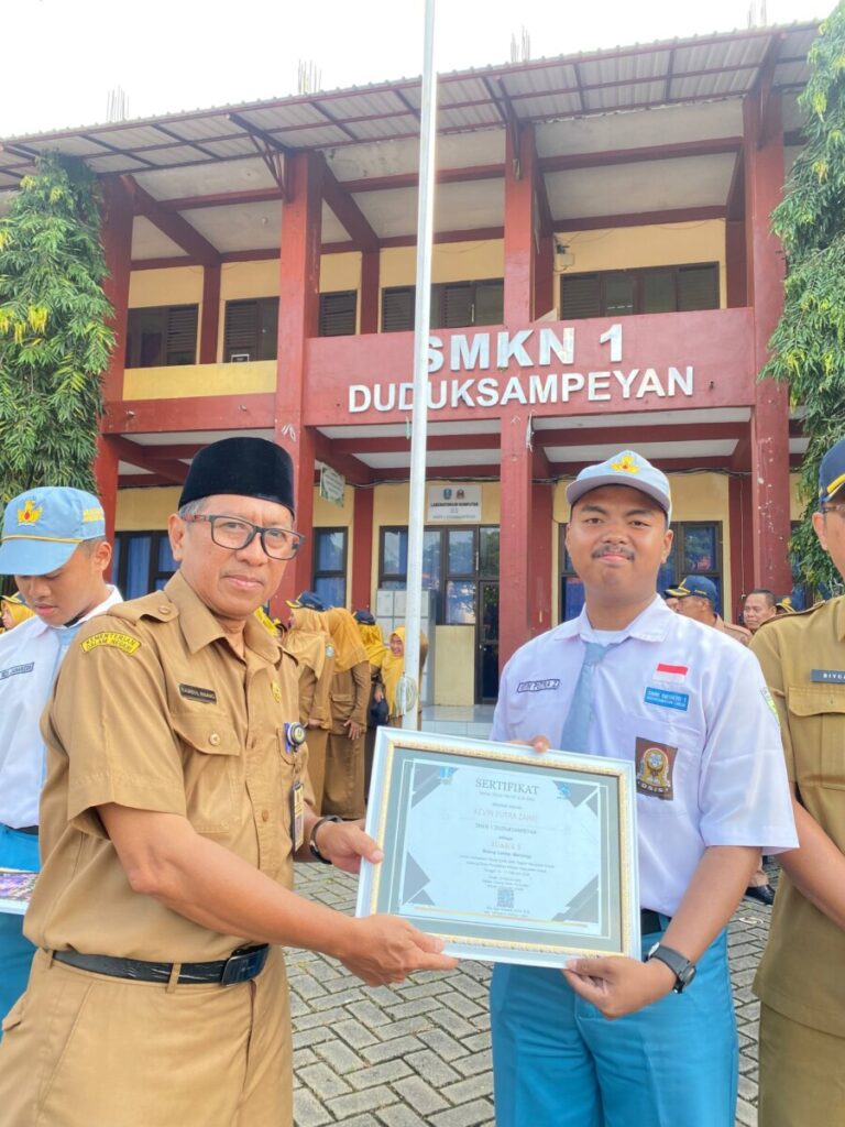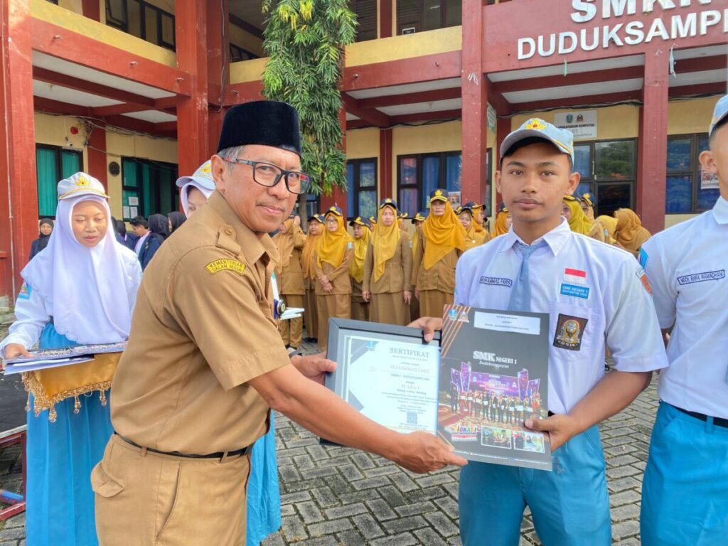 SKANEWS, GRESIK – SMKN 1 Duduksampeyan melaksanakan kegiatan penyerahan sertifikat penghargaan kepada siswa-siswi yang meraih prestasi pada Lomba Kompetensi Siswa (LKS) Dikmen Kabupaten Gresik. Para siswa tersebut juga dipercaya untuk mewakili kontingen Kabupaten Gresik dalam ajang LKS tingkat Provinsi Jawa Timur pada bidang lomba Accounting, Metrology, dan Welding.