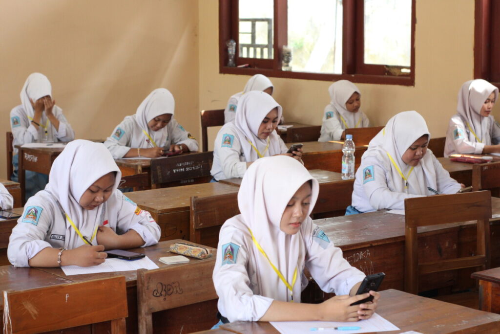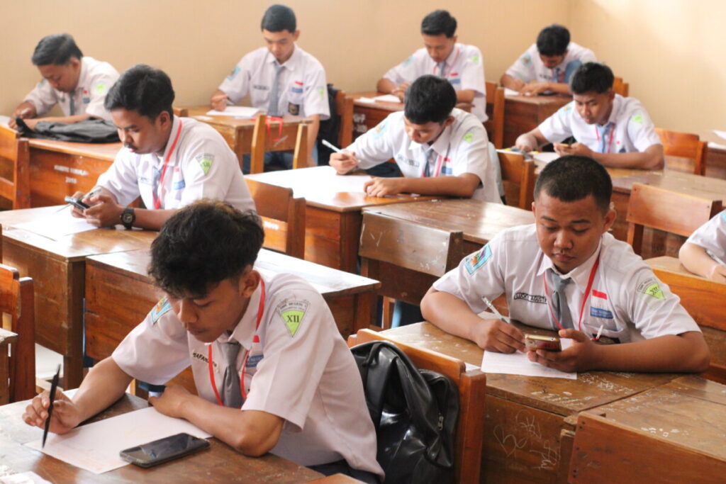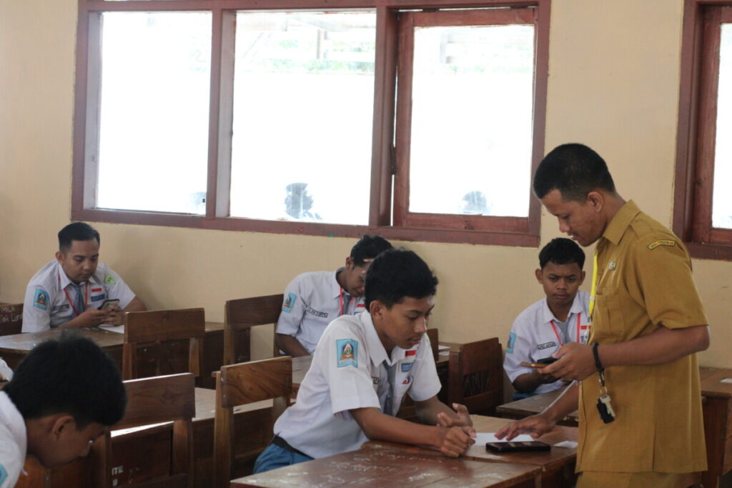 Gambar 2. Para pengawas ujian sedang menjaga dan membantu siswa yang mengalami kendala