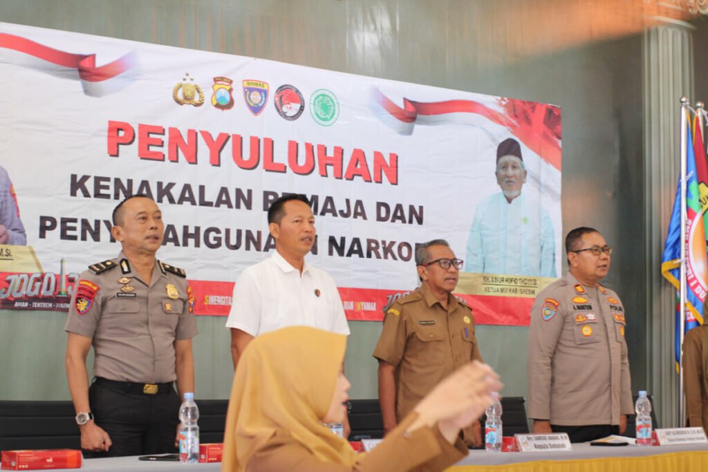 Sambutan berikutnya disampaikan oleh Kasat Binmas Polres Gresik, AKP Alimudin Nasution, S.H., M.H., yang memberikan arahan mengenai peran kepolisian dalam pencegahan dan penanggulangan penyalahgunaan narkoba di lingkungan pelajar. Kegiatan kemudian dilanjutkan dengan pemaparan materi oleh Bapak Kamim Tohari, S.H., selaku Ps. Kanit I Narkoba Polres Gresik, yang menjelaskan secara rinci mengenai jenis-jenis narkoba, dampak hukum, serta konsekuensi sosial yang ditimbulkan akibat penyalahgunaannya.